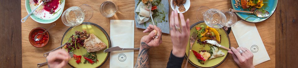 Den lille historie om de store rødder er et godt billede på konceptet bag restauranten Frederiksgade 42 i Århus. Ifølge Søren Kristensen er retten et resultat af, at grøntsagerne har fået så meget opmærksomhed på stedet. Christian Bøjlund er manden bag restauranten, kok og ansigtet udadtil. Oven på hans hoved sidder den tophue, han ofte ses med. "Grundtanken bag stedet startede med, at jeg besøgte restauranten Manfreds i København. Den har Det Økologiske Spisemærke i guld, og de laver grøntsagsbaseret delemad. Jeg kunne godt lide, at det er sådan lidt rock and roll", siger Christian Bøjlund.